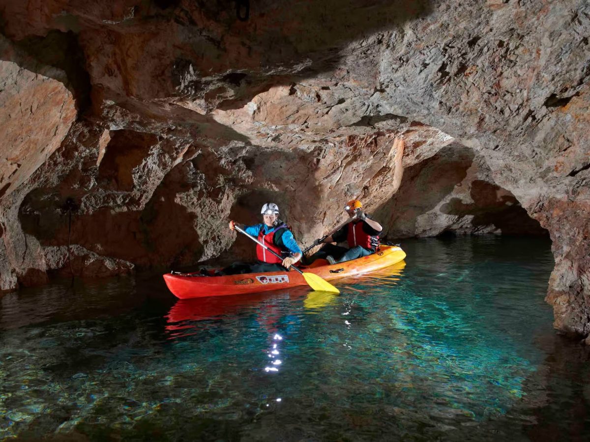 Embark on the original pr1motours.com flagship tour of Black Hole Kayaking™, an extraordinary underground adventure! Dive into the depths of abandoned mines and experience kayaking in complete darkness, illuminated only by headlights. All necessary kayaking equipment is provided.
